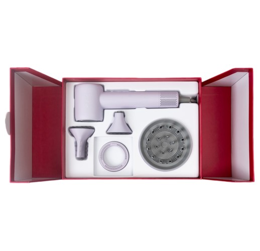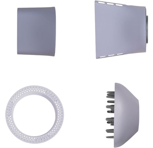 Εξαρτήματα (με μαγνητική ασφάλιση): Στόμιο για στέγνωμα, Στόμιο για styling (στενό), Φυσούνα, Αρωματικό aroma-ring