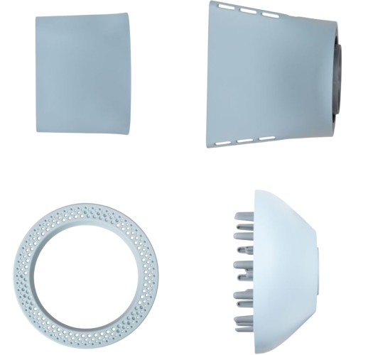 Εξαρτήματα (με μαγνητική ασφάλιση): Στόμιο για στέγνωμα, Στόμιο για styling (στενό), Φυσούνα, Αρωματικό aroma-ring