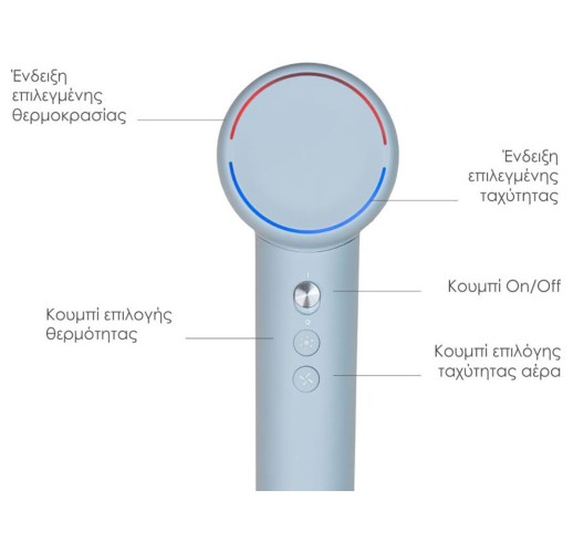 Ρυθμίσεις θερμοκρασίας: Ψυχρή ριπή, Για μωρά, Θερμή, Ζεστή, Εναλλασσόμενη