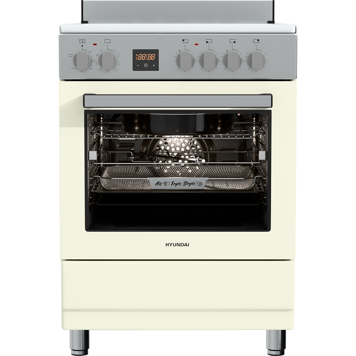 - Εξαρτήματα: 1 βαθύ ταψί, 1 ρηχό ταψί, 1 στρογγυλό βαθύ ταψί, 1 σχάρα, 1 ταψί Airfryer, Μηχανισμός Σούβλας