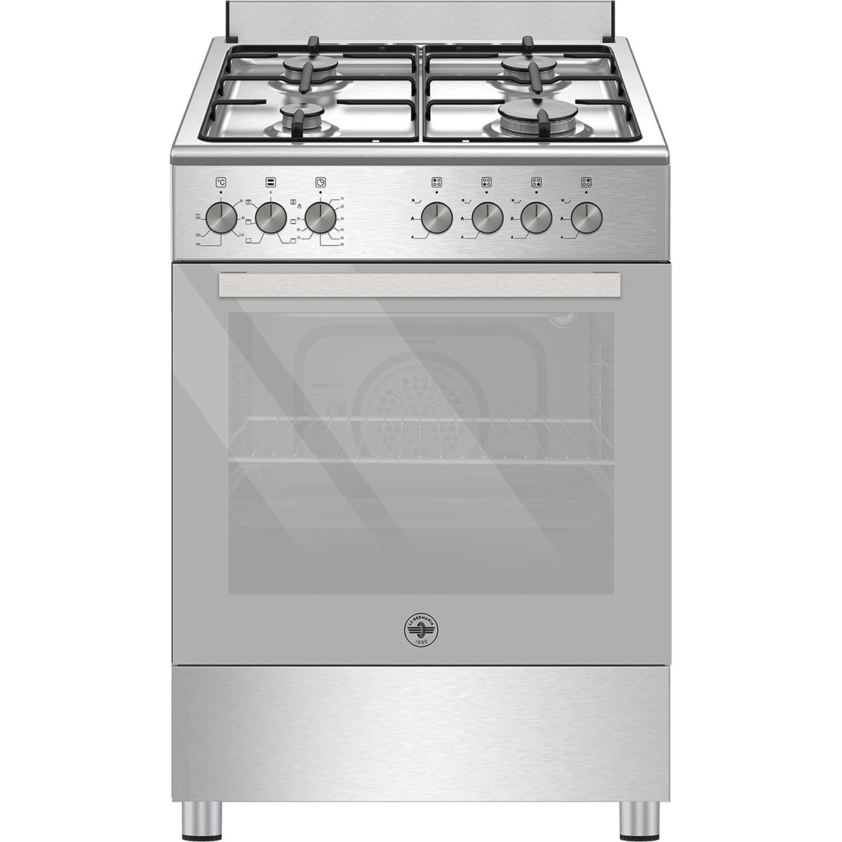 - 4 εστίες αερίου με αλουμινένιους διασπορείς και ενισχυμένες πλακέ εμαγιέ σχάρες:
