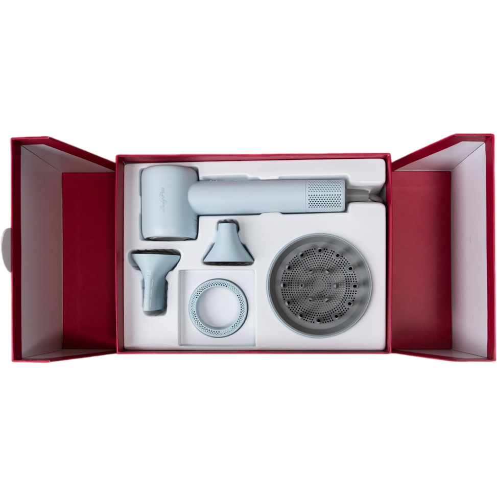 • Εξαρτήματα (με μαγνητική ασφάλιση): Στόμιο για στέγνωμα, Στόμιο για styling (στενό), Φυσούνα, Αρωματικό aroma-ring